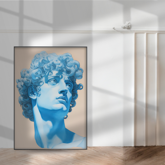 Blue Greek David Statue Portrait Print