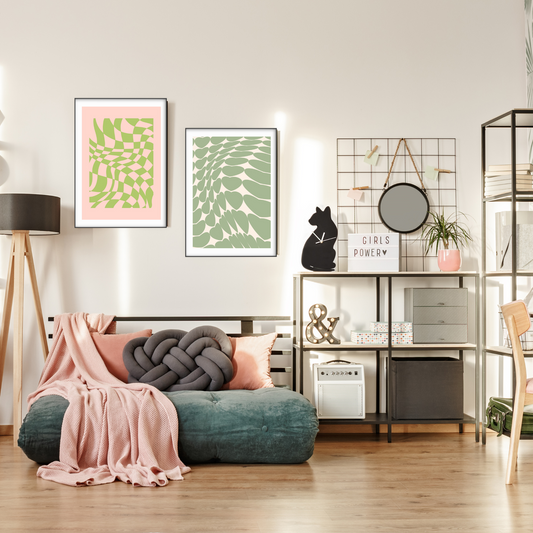 Y2K Aesthetic Checkered Green & Pink Art Print